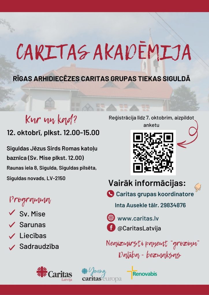 Nodibinājums “Caritas Latvija” organizē tikšanos visām esošajām un potenciālajām Rīgas arhidiecēzes draudžu Caritas grupām.Mērķauditorija ir cilvēki, kuri jau veic brīvprātīgo darbu draudžu Caritas grupās vai vēlas to īstenot tuvākajā laikā.Pasākums notiks 12. oktobrī Siguldas Jēzus Sirds draudzē, Raunas iela 8, Sigulda, LV-2150.Programma:12.00 – Sv. Mise13.00 – Pudienas13.45 – “Kas ir Young Caritas kustība?”, Marija Diaza, […]