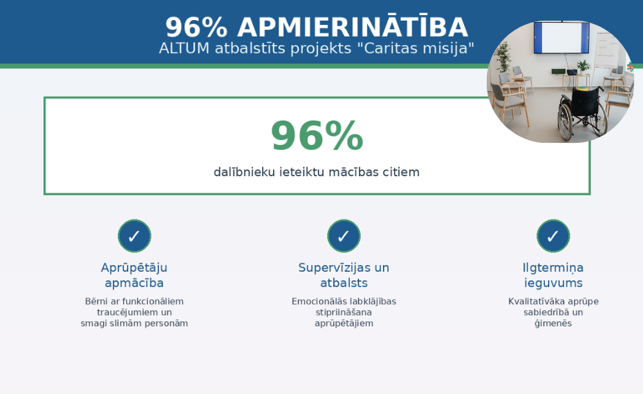 ALTUM atbalstītajā projektā “Caritas misija” sasniedz 96 % dalībnieku apmierinātību un uzlabo aprūpes kvalitāti.